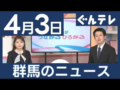 群馬・富岡市、安中市、みどり市3市長選 5日告示 (26/0 チャンネル名:群馬テレビ・ぐんテレ 投稿時間:2026-04-04 09:51:33 菜の花との共演 赤城南面千本桜で桜まつり始まる 群馬・前橋市 チャンネル名:群馬テレビ・ぐんテレ 投稿時間:2026-04-04 09:46:00 社会支える人材へ758人が入学式 高崎健康福祉大学 (26/ チャンネル名:群馬テレビ・ぐんテレ 投稿時間:2026-04-04 09:42:31 191チームの頂点へ 館林と玉村が激突 県選抜学童野球決勝 チャンネル名:群馬テレビ・ぐんテレ 投稿時間:2026-04-04 09:41:15 4月8日はタイヤの日 タイヤ点検の重要性 ドライバーに呼びか チャンネル名:群馬テレビ・ぐんテレ 投稿時間:2026-04-04 09:39:43 陸自・新町駐屯地で桜まつり 5日まで 群馬・高崎市 (26/ チャンネル名:群馬テレビ・ぐんテレ 投稿時間:2026-04-04 09:38:01 群馬ダイヤモンドペガサス2連覇へ白星発進 プロ野球BCリーグ チャンネル名:群馬テレビ・ぐんテレ 投稿時間:2026-04-04 09:35:25 【出没風輪】夜のイチゴ狩り体験!大人気スイーツも紹介(26/ タグ:出没風輪 チャンネル名:群馬テレビ・ぐんテレ 投稿時間:2026-04-03 11:40:17 赤岩宿に食を楽しめる新たな拠点 群馬・千代田町 (26/04 チャンネル名:群馬テレビ・ぐんテレ 投稿時間:2026-04-03 11:28:35 春休み中の遊園地 家族連れでにぎわう 群馬・桐生市 (26/ チャンネル名:群馬テレビ・ぐんテレ 投稿時間:2026-04-03 11:01:11 信越化学工業の新たな生産拠点が完成 群馬・伊勢崎市 (26/ チャンネル名:群馬テレビ・ぐんテレ 投稿時間:2026-04-03 10:58:25 「春の全国交通運動」前に出動式 群馬県庁県民広場 (26/0 チャンネル名:群馬テレビ・ぐんテレ 投稿時間:2026-04-03 10:58:11 ぐんま未来大学 最初の入学式 約230人が新たな門出 群馬・ チャンネル名:群馬テレビ・ぐんテレ 投稿時間:2026-04-03 10:54:57 群馬ダイヤモンドペガサス 開幕へ出陣式 リーグ連覇を誓う(2 チャンネル名:群馬テレビ・ぐんテレ 投稿時間:2026-04-03 10:53:20 【4/3】群馬のニュースをまとめてお伝えします▽ ほか タグ:4/3 群馬テレビ ぐんテレ ニュース チャンネル名:群馬テレビ・ぐんテレ 投稿時間:2026-04-03 10:38:26 中学生の野球大会 関東甲信越60チームが熱戦 群馬・前橋市( チャンネル名:群馬テレビ・ぐんテレ 投稿時間:2026-03-14 09:40:39 花に囲まれ 愛犬と特別な時間楽しむ 群馬・前橋市(26/03 チャンネル名:群馬テレビ・ぐんテレ 投稿時間:2026-03-14 09:39:11 災害時の避難所運営 必要なスキル学ぶ 群馬・高崎市(26/0 チャンネル名:群馬テレビ・ぐんテレ 投稿時間:2026-03-14 09:37:54 群馬県医師会の新医療拠点施設 起工式 群馬・前橋市(26/0 チャンネル名:群馬テレビ・ぐんテレ 投稿時間:2026-03-14 09:36:37 群馬出身のパイロット 小学校で特別授業 群馬・太田市(26/ チャンネル名:群馬テレビ・ぐんテレ 投稿時間:2026-03-14 09:34:43