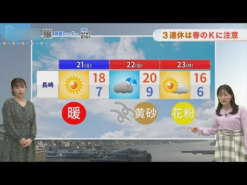 【長崎天気】3連休は「春の4K」に注意 タグ:長崎天気 チャンネル名:NBC長崎放送 投稿時間:2026-02-20 10:35:59 【長崎天気】週末は雨に注意☔ タグ:長崎天気 チャンネル名:NCC長崎文化放送 投稿時間:2026-01-23 08:42:17
