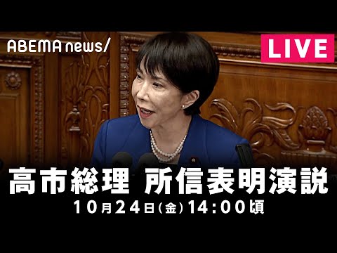 X Facebook はてブ Pocket LINE Pinterest 【LIVE】高市早苗総理が所信表明演説|10月24日(金) タグ:LIVE 高市早苗 所信表明演説 国会 生中継 生放送 アベマ ニュース チャンネル名:ABEMAニュース【公式】 投稿時間:2025-10-24 05:46:20