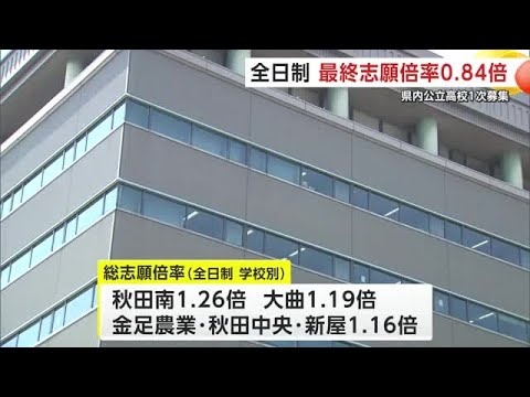 X Facebook はてブ Pocket LINE Pinterest 秋田県公立高校入試 最終志願倍率は「0.84倍」 全体の学校 チャンネル名:AKT秋田テレビ(公式 ニュース) 投稿時間:2026-02-12 10:17:26