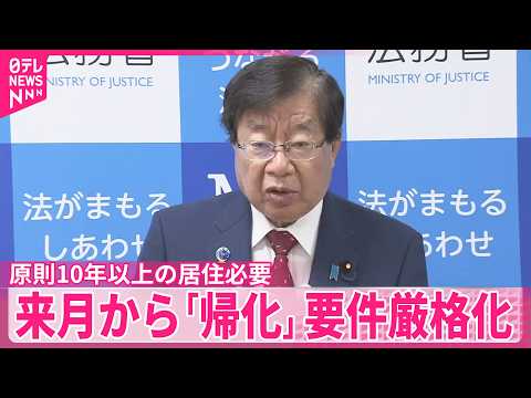 X Facebook はてブ Pocket LINE Pinterest 【「帰化」要件厳格化】原則10年以上の居住必要 来月から タグ:「帰化」要件厳格化 帰化 国籍 厳格化 日テレ ストレイトニュース ニュース 最新ニュース配信中 チャンネル名:日テレNEWS 投稿時間:2026-03-27 02:57:37